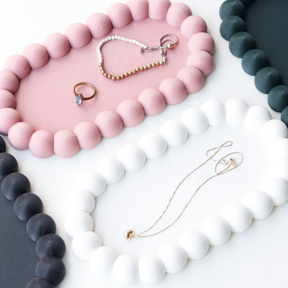 Experience the perfect combination of elegance and whimsy with our Mid Century Modern Fluffy Trinket Tray Set. This set includes both the oval and round trays, offering versatile storage solutions with a touch of mid-century modern charm.