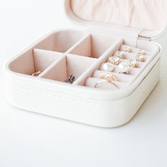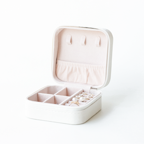 Perfect for travelers, bridesmaids, and jewelry lovers, this small-but-mighty case is available in three timeless colors: Cream, Black, and Blush.