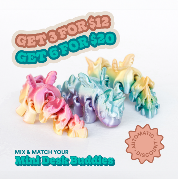 Add a dose of whimsy and charm to your workspace with our Mini Desk Buddies. These delightful 3D printed companions are perfect for anyone looking to brighten their desk and lift their spirits. With a variety of designs to choose from, you can find the perfect buddy to match your personality or gift a set to someone special.