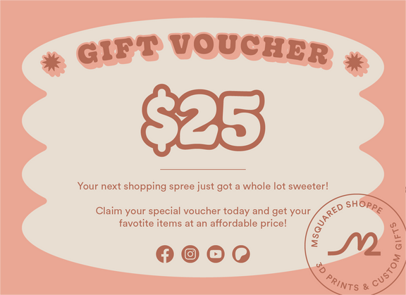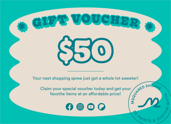Discover the joy of giving with MSquared Shoppe Gift Vouchers . Whether it's for a birthday, holiday, or just to show someone you care, our digital gift vouchers make the perfect present for any occasion. Shop now and let your loved ones indulge in a world of delightful discoveries!