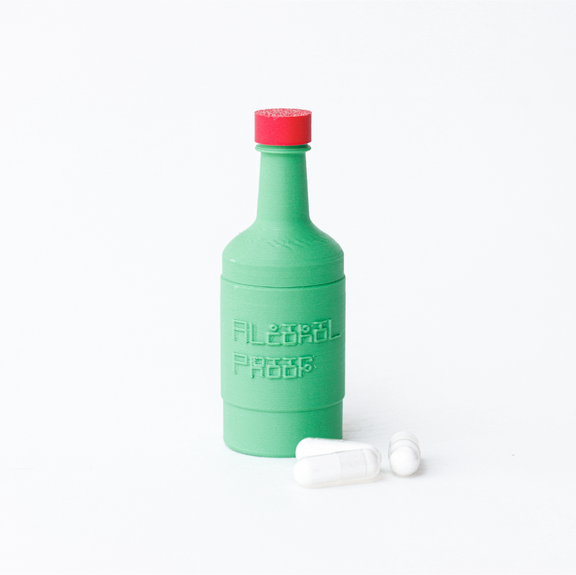 For all our friends who love soju but hate the glow, we have the perfect solution – the 3D Printed Soju Bottle Pill Container! A whimsical and functional solution to your antacid needs! Designed with a touch of irony, this 3D printed pill container is shaped like a classic soju bottle, paying homage to the notorious Antacid Asian Glow ("Alcohol-Free"). This charming and practical container is designed specifically for those who experience Asian Glow, making it easy to keep your antacid pills handy and your glow under control.